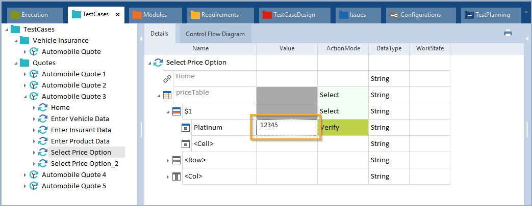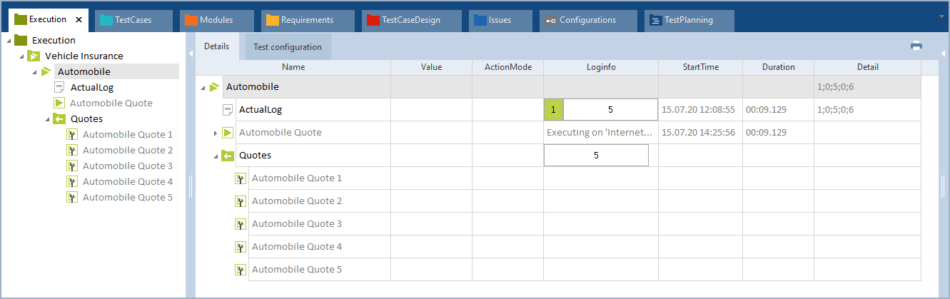 Gehen Sie im Reiter TestCases zum Testfall Automobile Quote 3.