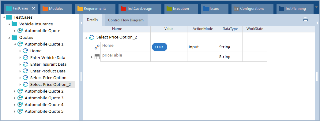 Kopieren Sie den Testschrittwert Select Price Option_2 und fügen Sie ihn in die anderen Testfälle im Ordner Quotes ein.