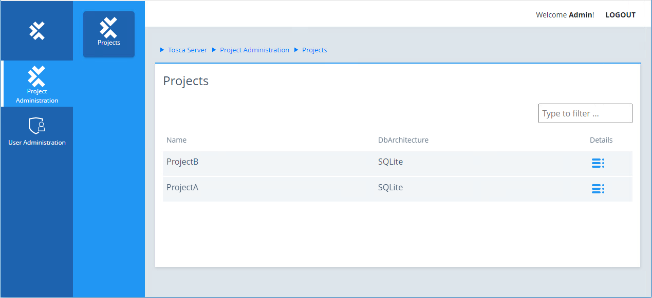 1. Greifen Sie auf die Tricentis User Administration zu und klicken Sie auf Project Administration.