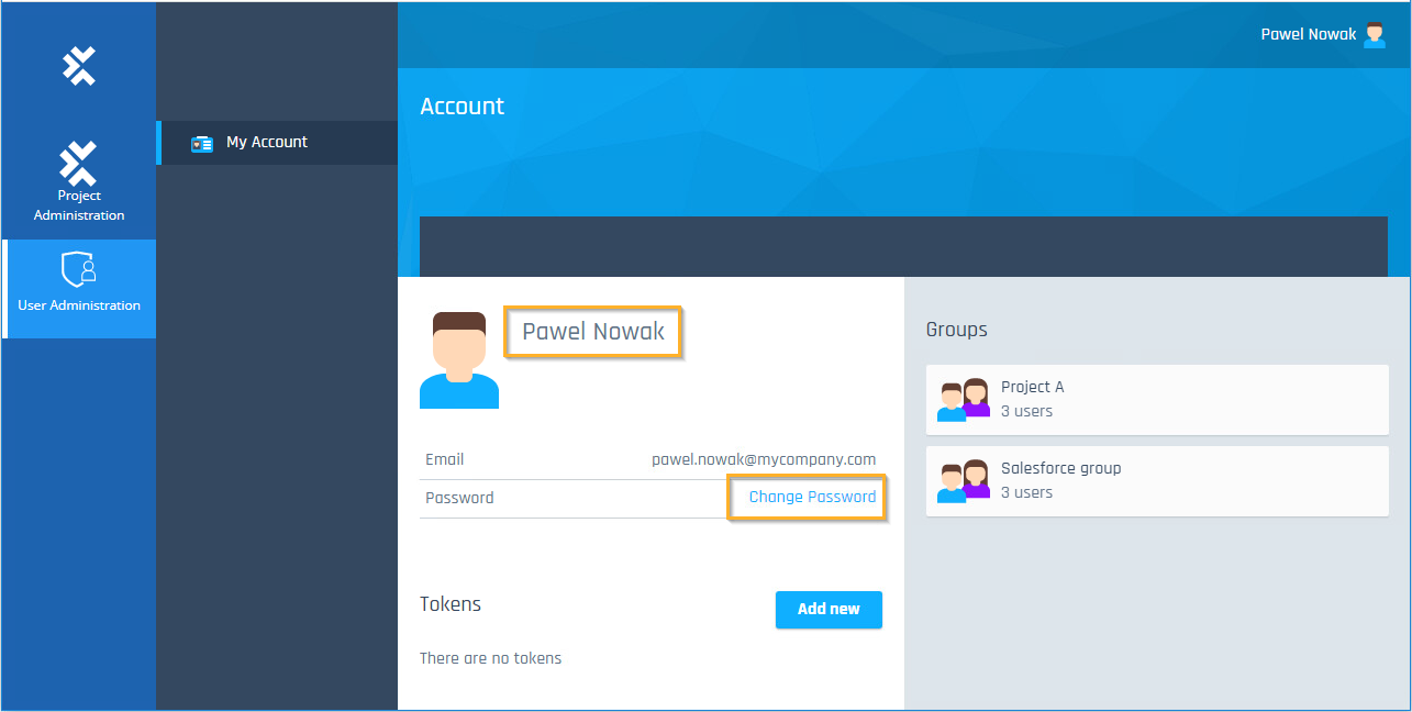 Ihr eigenes Benutzerkonto der Tricentis User Administration bearbeiten