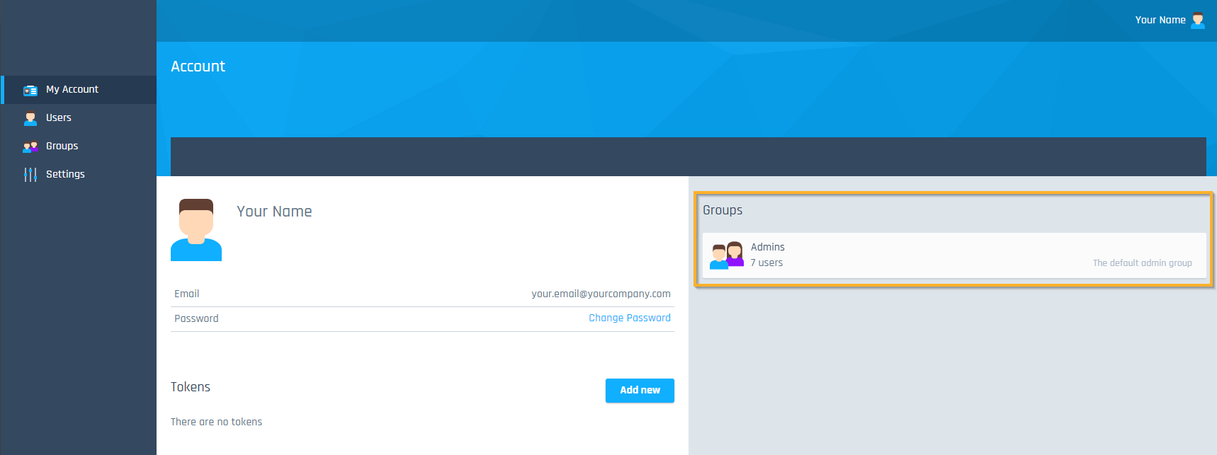 Um zu überprüfen, ob Sie ein Administrator sind, gehen Sie zu https://authentication.app.tricentis.com. Im Abschnitt Groups auf der rechten Seite sollten Sie Admins sehen.