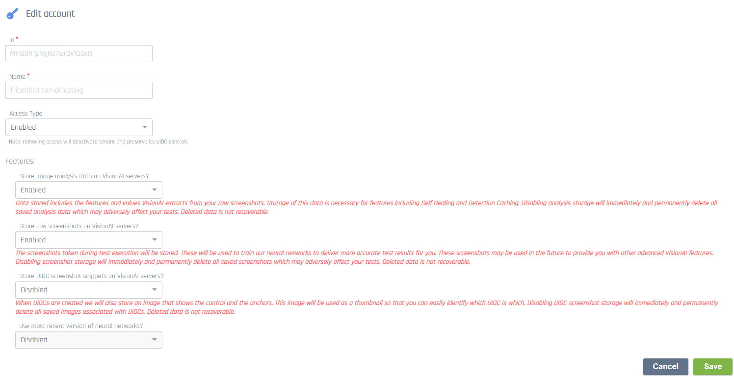 Bildanalysedaten enthalten die historischen Ergebnisse der KI, die Ihre Screenshots ausgewertet hat. Aktivieren Sie dieses Feature, um die Selbstheilung von Vision AI-Testfällen zu verwenden. Nähere Informationen finden Sie in der Vision AI-Dokumentation. |