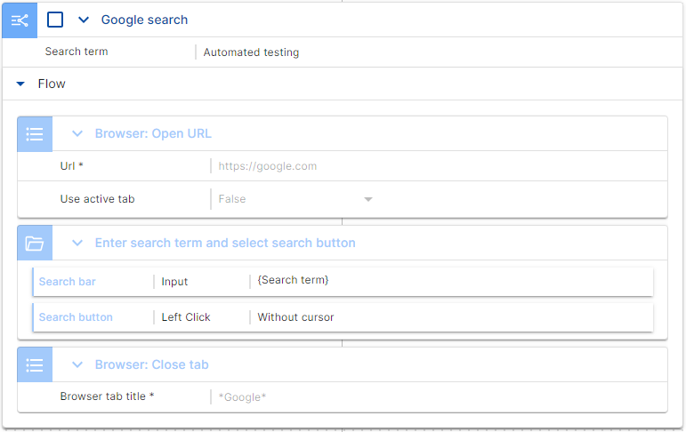 Let's say you have a reusable test step called Google search. This step performs three actions: