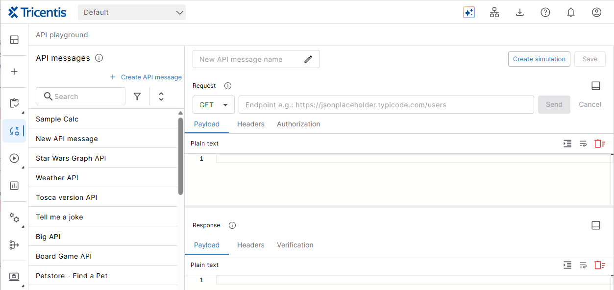 Go to API simulation > API playground.
