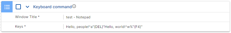 Title of the window where you want to send the key presses. The title is case-sensitive and must match exactly. You can also use wildcards. Tosca Cloud brings the window to the foreground. |