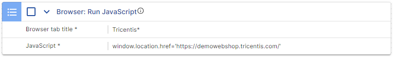 Title of the browser window to execute the code on. The title is case-sensitive and must match exactly. You can also use wildcards. Use an asterisk * to match any title. This is useful if you simply want to match the only browser tab that's currently open. |