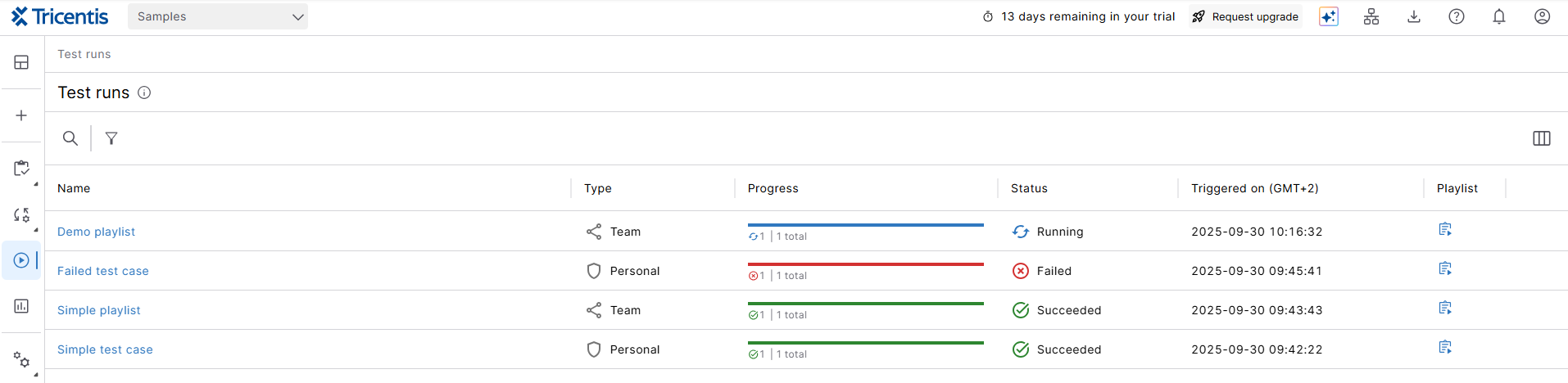 To quickly find the playlist with the test run you used, select Open playlist in the Playlist column. This is useful when: