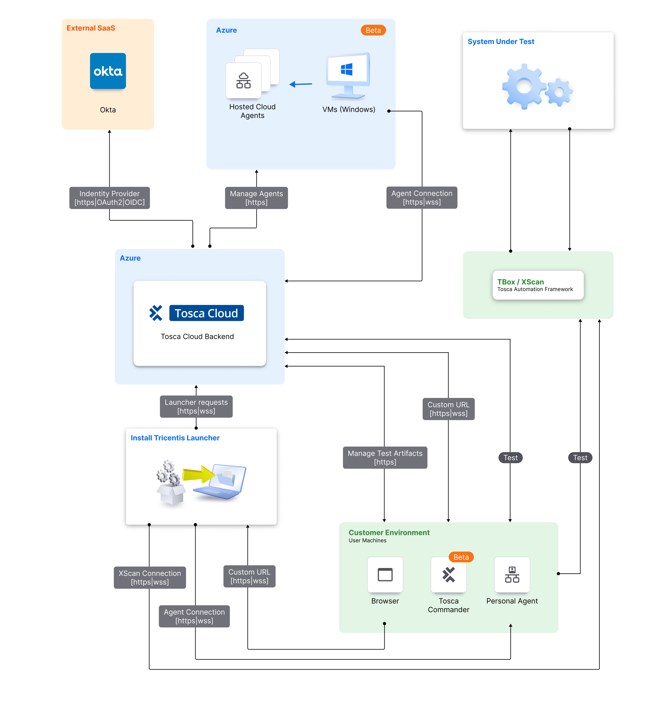 ランチャー uses HTTPS for communication with Tosca Cloud.