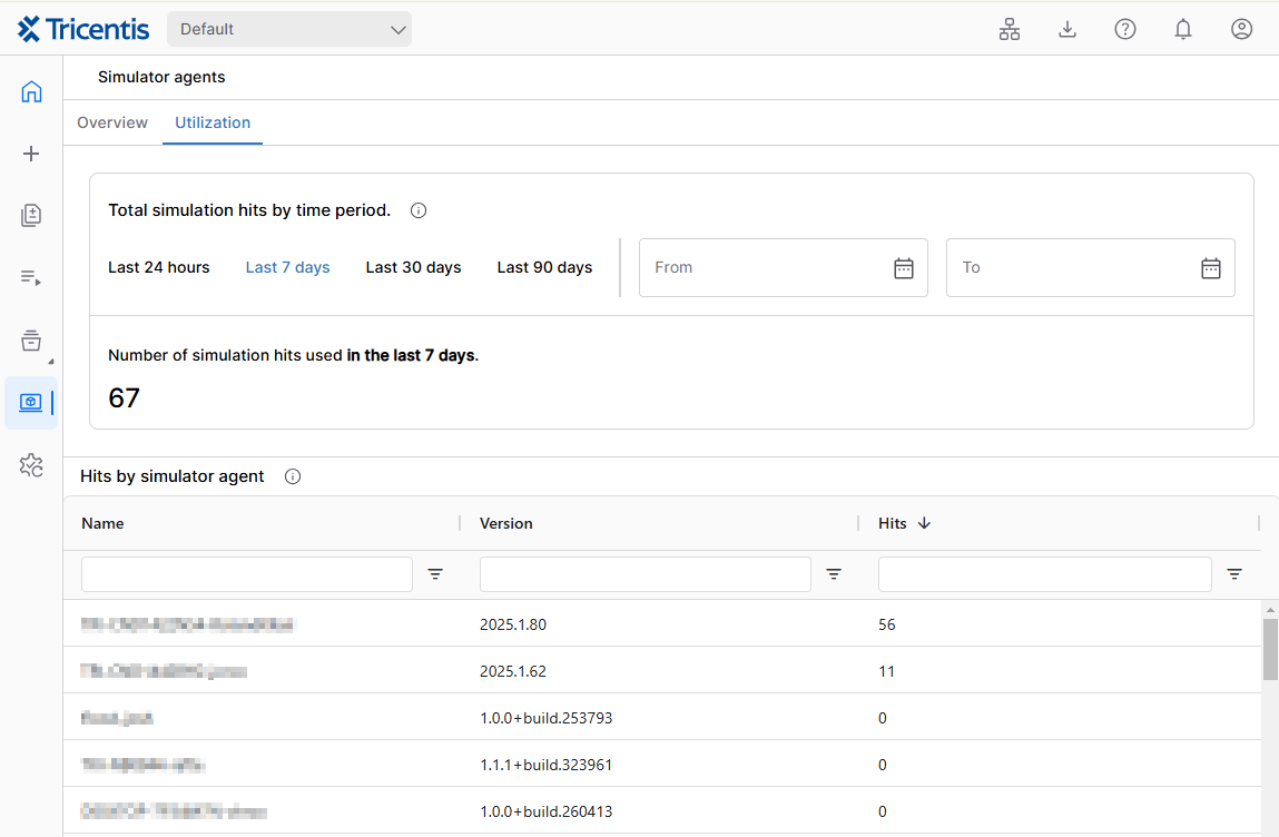 The total number of simulation hits used by all agents in the ワークスペース.適切なデータを取得するための期間を選択することができます。