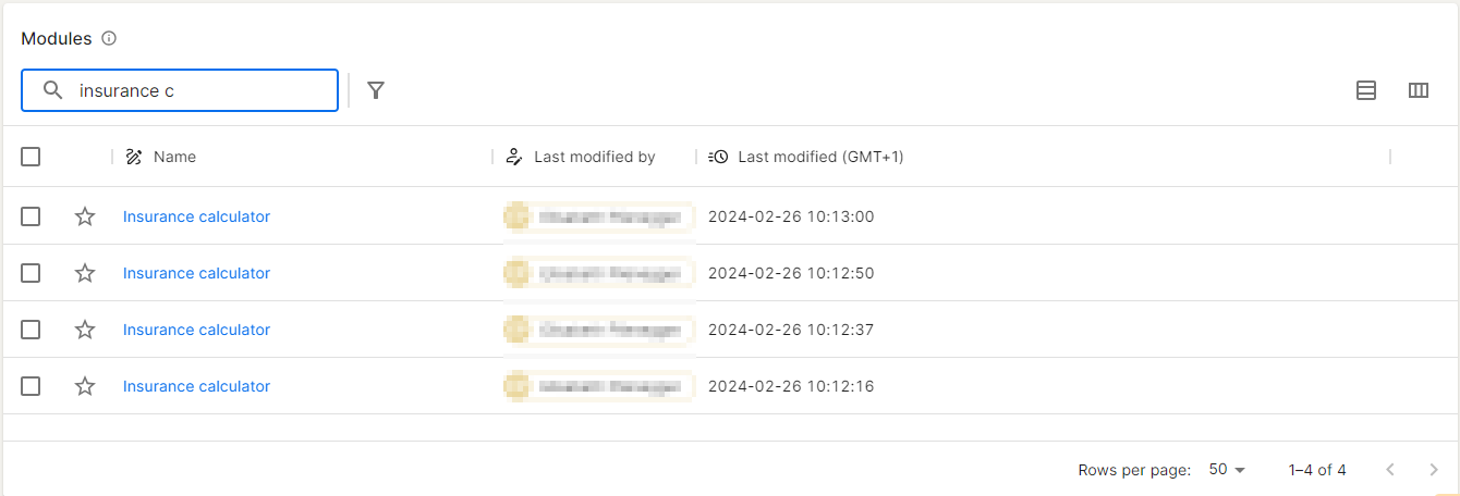 たとえば、画面が変わってもキャプションが常にアプリケーションの名前である場合、モジュールの名前を変更する必要があります。このときモジュール名を変更しないと、検索結果が非常にわかりにくくなり、どのモジュールが必要なのか判断するために余分な時間を費やすことになります。