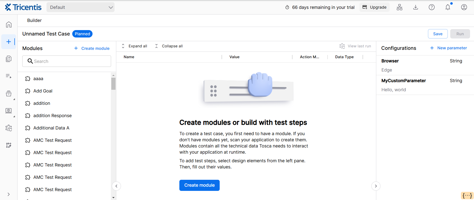古いテストケースエディターでパラメータを変更するには、テストケースのタブでパラメータに移動し、変更を行ってください。