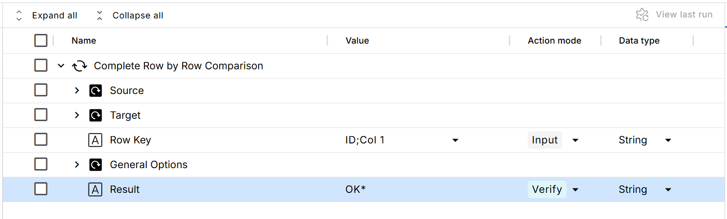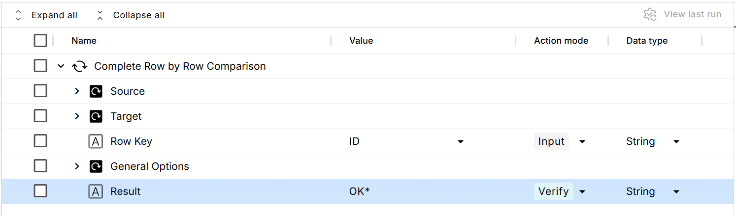 The test step Result allows you to verify the outcome of the comparison. To do so, enter one of following values into the Value column: