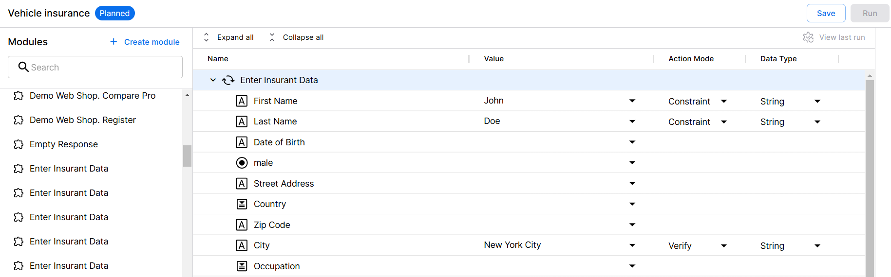 Action Modeの「Output」では、後で再利用できるように、変数のコントロールデータを保存します。たとえば、アプリケーションの別の部分に挿入したり、別のコントロールの内容と比較したりします。これにより、全体的なユーザージャーニーが期待通りになります。