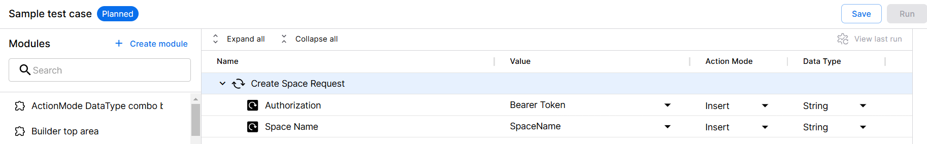 Action Modeの「Insert」は、APIモジュールのコントロールに値を挿入します。