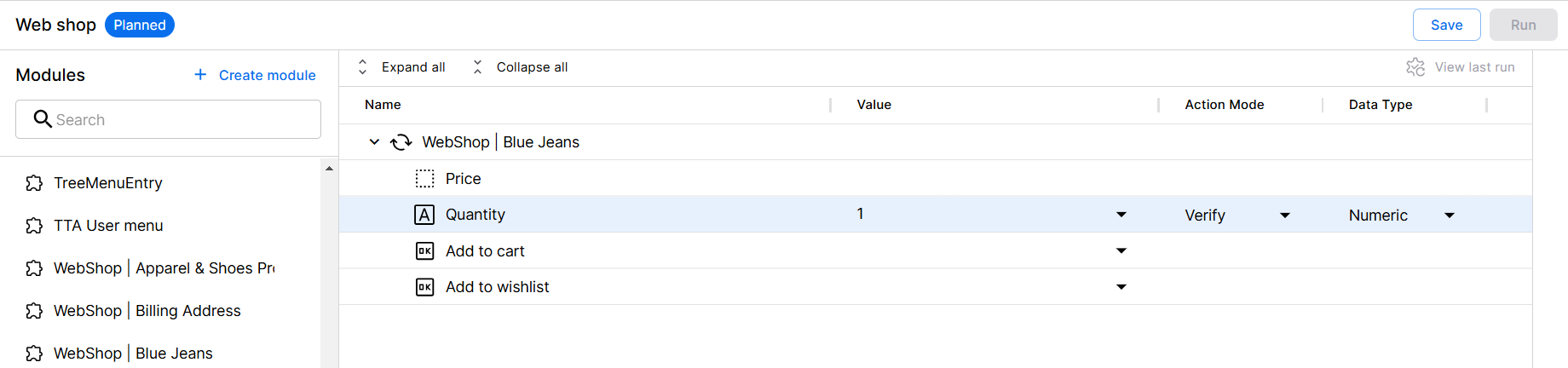 操作タイプの「Verify」は、特定の値をアプリケーション内のコントロールと比較します。これにより、アプリケーションのすべての要素が期待されるデータまたは動作を示すようにします。