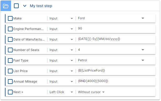 操作タイプの「Input」はテストステップで指定した値をコントロールに書き込みます。これにより、フォームやクエリなど、入力を必要とするアプリケーションの任意の部分をテストすることができます。