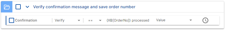 「Output 」で作成した変数は、コントロールの値全体を保存します。ただし場合により、その一部だけが必要な場合もあります。たとえば、<dynamic order number> processedのように、確認メッセージに静的な部分と動的な部分がある場合です。また、新しい注文番号がデータベースに表示されるかどうか確認できます。