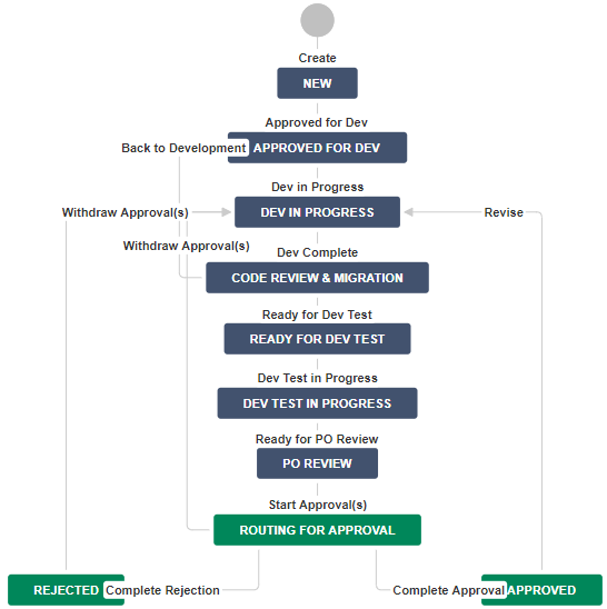 If the new transitions and intermediate states are not configured, then Vera will continue processing without using the original Routing for Approval, Approved, and Rejected statuses.